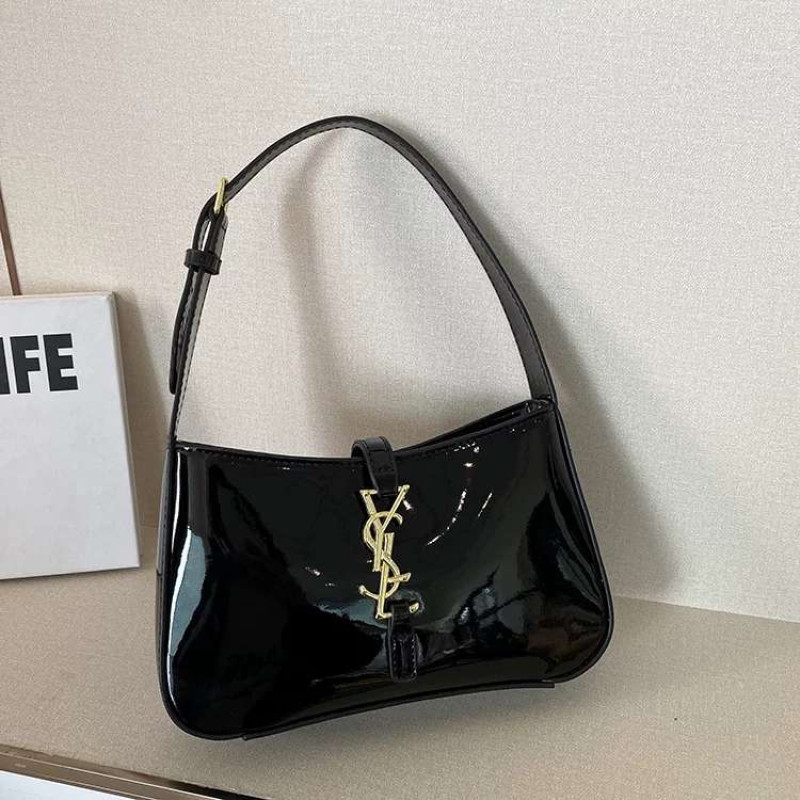glossy black leather bag for ladies