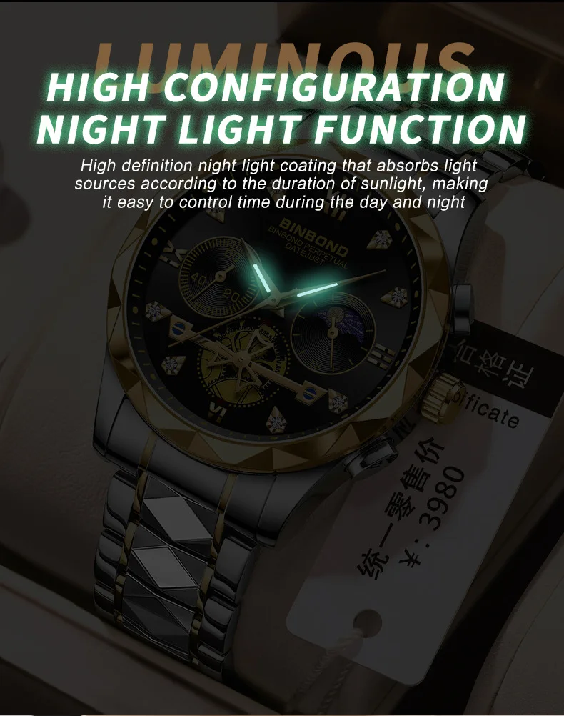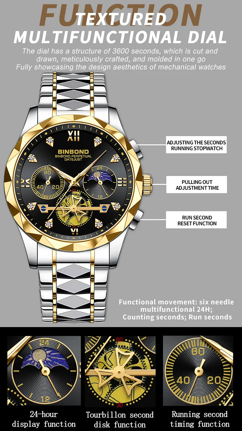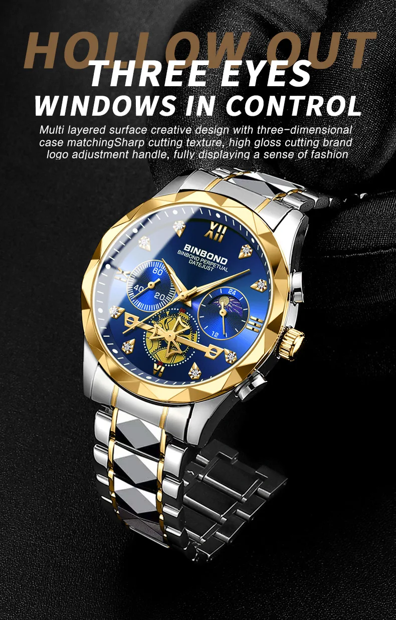 binbond hollow machinery design watch for men