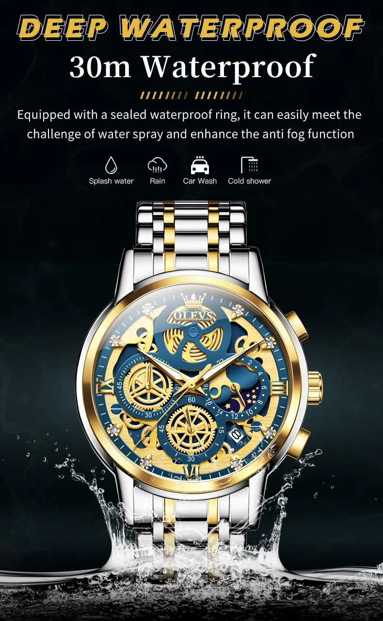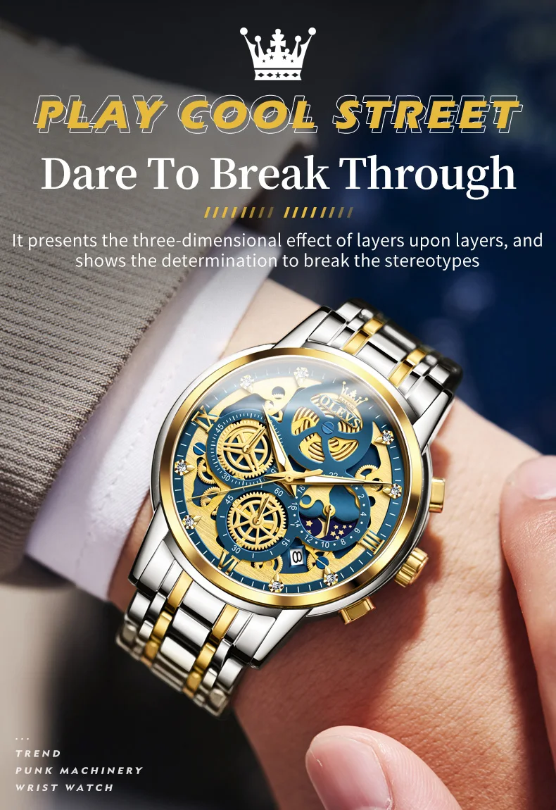 OLEVS 9947 Men's Luxury Watch Imitate Skeleton Watch